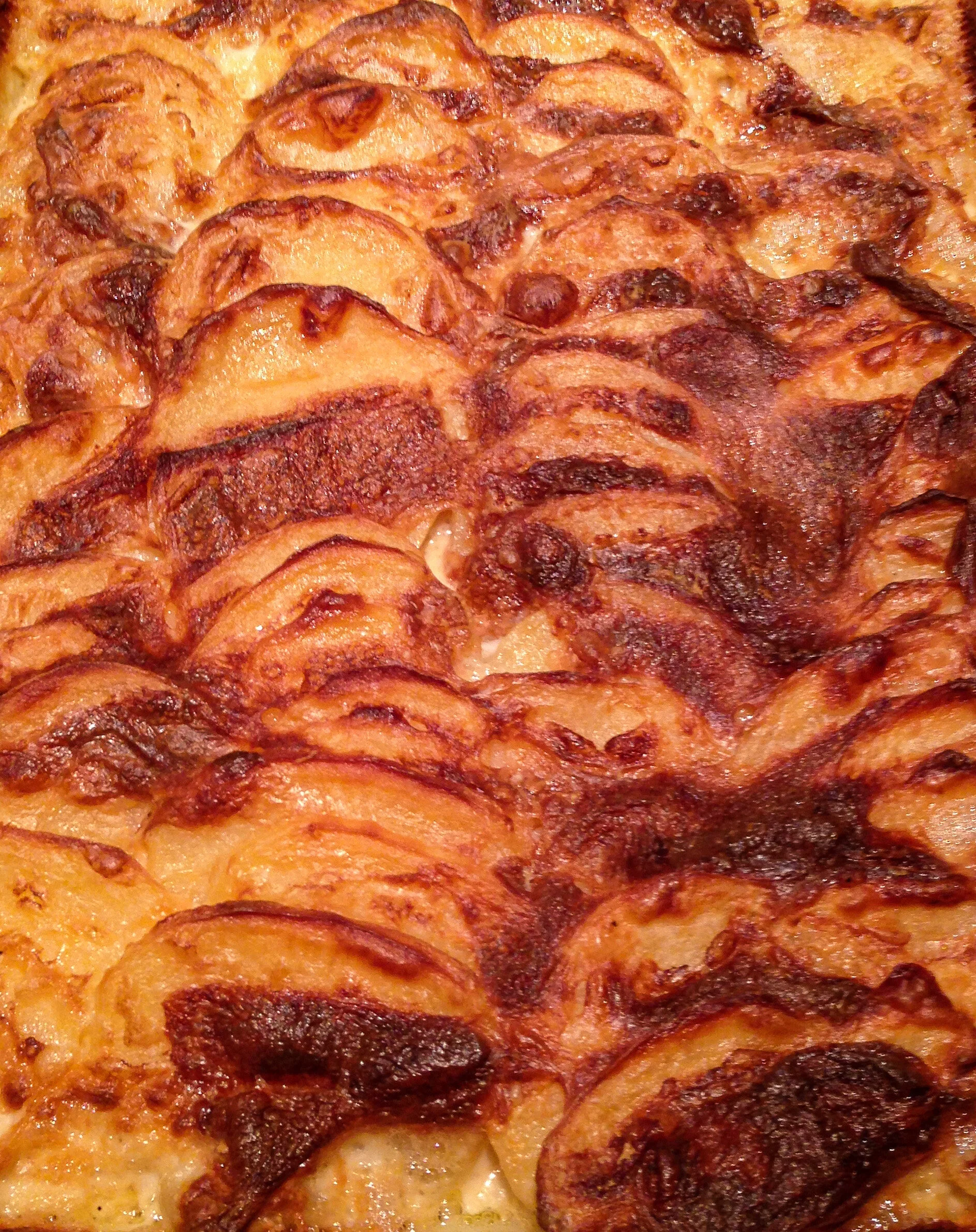 This dish originated in the former Dauphiné province of France, which is the present day Isère, Drôme, and Hautes-Alpes regions. When I lived in the Isère region, this was one of the first dishes I was taught to make and still my one of my favorites. It is creamy, comforting, and perfect for feeding a crowd over the winter holidays. Of course, there are many different versions— some add nutmeg, cheese, milk — but I learned the basic, old-fashioned, no fuss version. Sweet potatoes can easily be substituted for regular potatoes, and it can definitely be baked ahead of time, or even 2 days before. Just store in the fridge and reheat in a 250 oven for at 30-45 minutes until warmed.